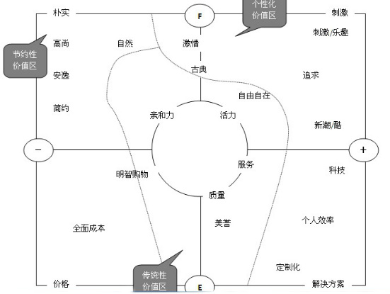 中國(guó)消費(fèi)者的價(jià)值元素分布圖框架